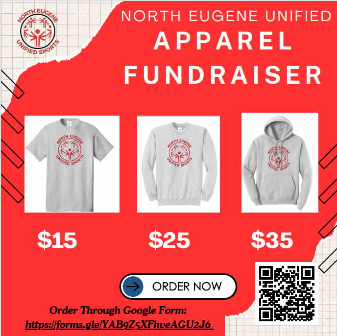 We’re excited to share that Unified Sports apparel is now available for purchase! This is a great opportunity for staff to show their North Eugene Unified pride and support our incredible athletes and partners on and off the court.