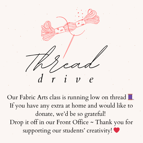 Our Fabric Arts class is running low on thread, and we’d love our community’s help! If you have extra spools at home, we would be so grateful for your donation. ❤️